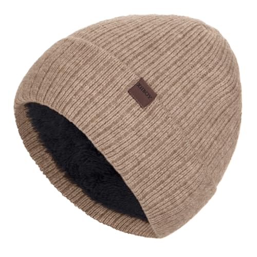 極暖ふわふわ裏起毛のニット帽。柔らかい肌触りと美シルエットで、防寒性抜群。厚手で伸縮性があり、通勤やアウトドアにも最適。男女兼用で、シンプルなおしゃれデザインのカーキ色。