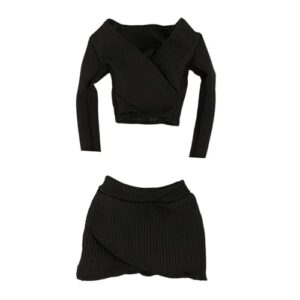 Tachiuwa 1:6 女用クロップトップ 長袖 コスチューム ミニドール用 カジュアル アクションフィギュア衣装 12インチアクションフィギュア, 黒