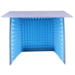 Livmorx 簡易防音室は、1人用の吸音パネルを搭載した卓上パーテーションです。録音・会議に最適で、ノイズを減少。ポータブル設計のブルー色が特徴です。