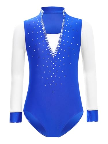 [Chaoyinn] 子供用 男の子向け きらきらしたレンガストーン入り フィギュアスケートダンス用 ロングスリーブ Vネック アスレチックなボディースーツ トップス ボールルームコスチュームの高価買取