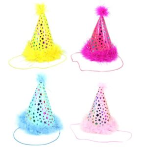 [FRCOLOR] バースデーハット コーンハット 4色 三角帽子 誕生日 お祝い パーティー小物 コスチューム 子供 大人兼用 バースデー帽子 紐付 ふわふわ 可愛い 誕生日 パーティー小物 4個セット