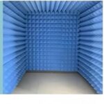 YAKINOのシングル簡易防音室は、60cmの折りたたみ式パネルで、外側はグレー、内側はブルー。防音板や吸音材を使用し、家庭用に最適なデザイン。卓上や間仕切りとしても利用可能。