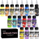 / Tplook エアブラシ塗料16色水性アクリル塗料セット、プラスチックモデル、ガンダム、メカ、車、ミニチュア、セラミックキャンバス紙用希釈済み、高光沢、速乾、シンナ付き