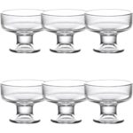 クリアガラス製の足付きヨーグルトカップは、パフェやデザート、サンデー、アイスクリーム用として最適です。おしゃれな透明デザインで、喫茶店や家庭での使用にぴったり。ミルクセーキ容器としても活躍します。
