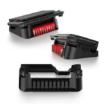 Switch 2用スタンドは、フラットドック対応の小型キャビネット用で、狭いスペースにも対応。10枚のゲームカードを収納できるブラケットを備えた一体型の収納ベースです。