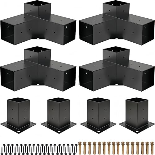 パーゴラ 組立キット 高炭素鋼製 ブラックパウダーコーティング 4×4木材対応 テラス屋根 diy キット 耐候性設計 屋外専用 パーゴラ キット ガゼボ/アーバー用 取付金具セット パーゴラ diy キット 耐荷重強化 防錆処理 簡単組み立て カーポート自作キット 日本語説明書付き