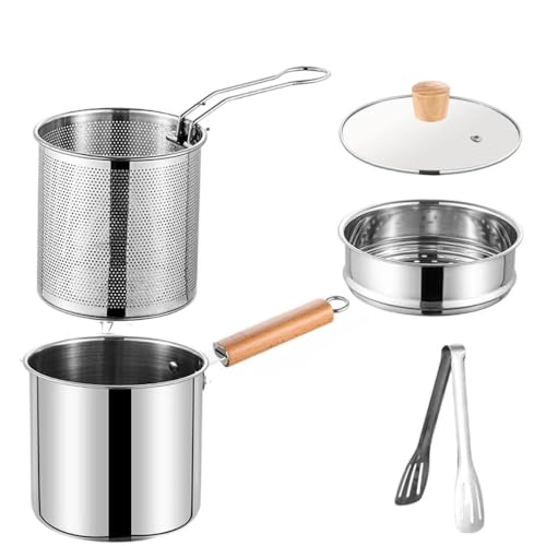 HeartTrend パスタポットは、304ステンレススチール製で耐久性があり、ガラス蓋付き。多機能でフライヤーや蒸し器としても使え、すべての熱源に対応しています。