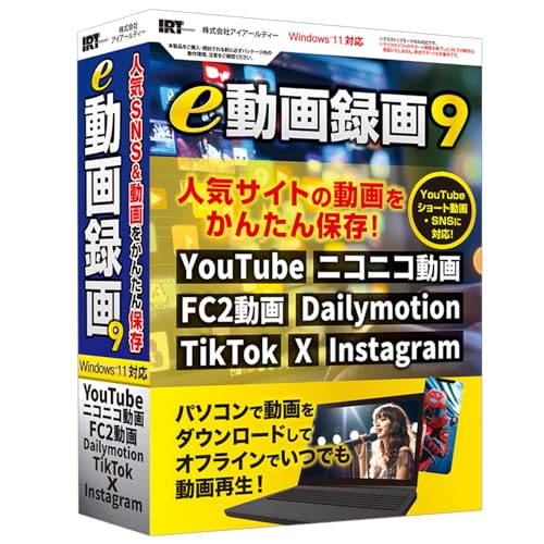 e動画録画9は、YouTube、ニコニコ動画、TikTok、FC2動画、Dailymotion、Instagram、Xに対応したWindows用動画ダウンロードソフトです。高品質で簡単に録画・保存が可能です。
