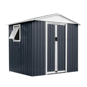 【可動棚&すべり出し窓付き】 物置 屋外 スチール 倉庫 床材補強フレーム付き 戸外収納庫 物置き おしゃれ 大型 収納庫 防さび ベランダ 防水 ドア スチール物置 屋外収納 ガーデニング 庭 (ブルーグレー, W194cm*D162cm*H184cm)