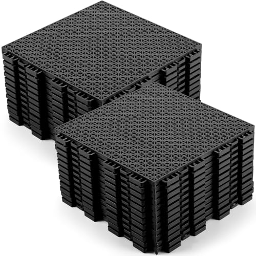 12枚セットの滑り止めゴム製フロアタイル。サイズは10インチ x 10インチ。屋外プールデッキやガレージに最適で、モジュラーインターロッキング式で簡単に設置可能。