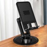 折りたたみ式アルミ製フォンスタンド。360度回転し、安定したベースで全スマートフォンやタブレットに対応。持ち運びに便利で、作業や視聴を快適にサポート。