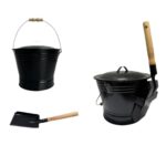 Qobvoeh の壁炉用掃除セットは、黒色鉄製の灰バケツ、蓋付きシャベル、ほうきが一体型で、暖炉や薪ストーブの灰処理に最適な多用途清掃器具です。効率的な清掃が可能。