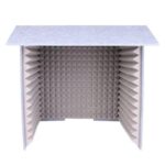 PIKNEWの簡易防音室は1人用で、60*60cmのサイズ。吸音パネルを使用し、リバーブやノイズを排除。録音や会議、放送に最適で、飛沫防止機能も備えています。グレーのフェルトボード製。