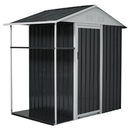 屋外物置 スチール 収納ラック付き 倉庫 戸外収納庫 W193*D130*H189cm 物置き おしゃれ 大型 防さび ベランダ 防水 ドア スチール物置 屋外収納 (ブラック)の高価買取