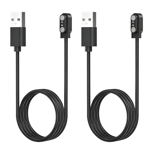 スマートウォッチ充電ケーブル2個入り、0.6mの長さ。2ピン距離4.0mm、磁気吸着USB充電コード。ID205L/ID216などの幅広いスマートウォッチ対応。耐久性、簡単操作、軽量設計で断線防止。