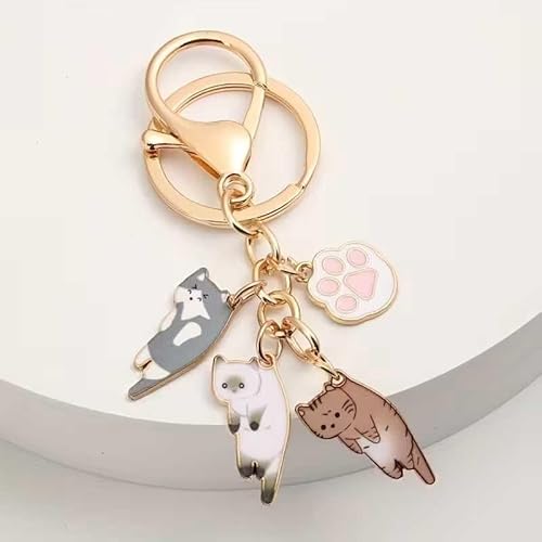 エナメル猫の足跡キーホルダー – バッグ、車の鍵、パーソナルアクセサリー用のアニマルキーリング, グレー, One Sizeの高価買取ITEM