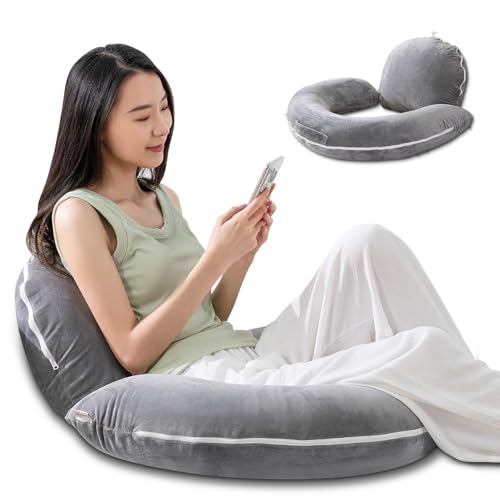 AngQi クッション 背もたれは、膝上クッションとしても使用できる多機能ピロー。肘置きや読書、ゲーム、テレビ鑑賞に最適。高級ベロア生地カバーでふわふわもちもち。サイズは80✕57✕18㎝、カラーはグレー。