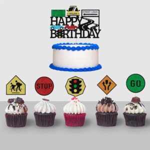 運転免許証ケーキトッパー8個 – 面白い交通機関の誕生日ケーキの装飾、男の子のための16歳の誕生日パーティーデコレーション、新しいドライバー学習者ドライバー車の道路標識テーマケーキデコレーション用品