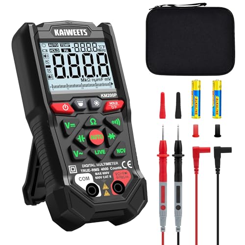 KAIWEETSマルチテスター4000カウントは、電圧・電流・抵抗を正確に測定できるデジタルテスター。バックライト付きディスプレイや、非接触型電圧測定機能を搭載し、使いやすさが向上。