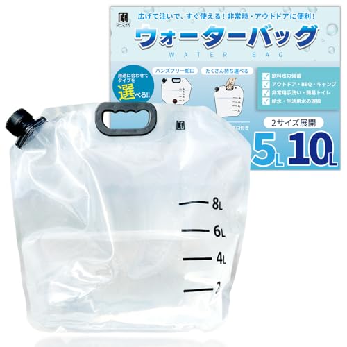 メモリ付き10Lウォータータンクは折りたたみ式で、軽量かつ携帯性に優れています。防災グッズやキャンプに最適で、給水が簡単に行えます。