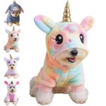 小型犬・中型犬用の可愛い干支コスプレ服。秋冬の防寒対策に最適な暖かい着ぐるみ。2026年の午年にぴったりで、お散歩や写真撮影、年賀状にも最適です。サイズS、虹色デザイン。