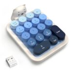 AJAZZ ワイヤレステンキーは、カラフルなグラデーションデザインと人間工学に基づいた構造が特徴で、6-10mの接続範囲を持ち、デスクトップPC/ノートパソコンに対応します。取り外し可能なキーキャップとかわいいクマデザインが魅力です。