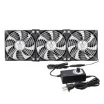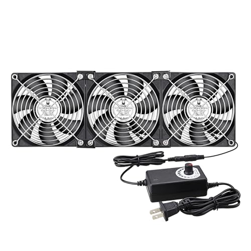 3連の120mm x 25mm AC冷却ファンです。ケースファンや窓用、温室、車中泊に最適。換気扇としても使用可能で、100V-240V対応。スピードコントローラー付き、USプラグ仕様。