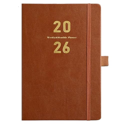 Jxzyil 2026年のA5スケジュール帳。ハードカバーで毎日1ページの厚手紙仕様。180°開けるデザインで、ビジネス、生活、学習に最適です。カラーはブラウン。