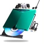 外付けDVD CDドライブ USB-A+Type-cインターフェイス対応 ポータブルCD DVDドライブ CD/DVD読み取り/書き込み対応 Windows7-11/Mac OS対応 (teal) 高価買取中