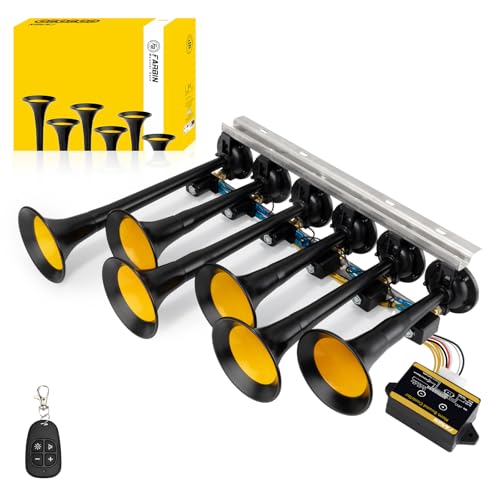 FARBINミュージカルエアホーンは、36メロディ、178dBの音量で、12/24ボルト対応。コントローラー付きでバス、トラック、大型車両に最適です。