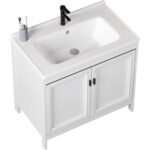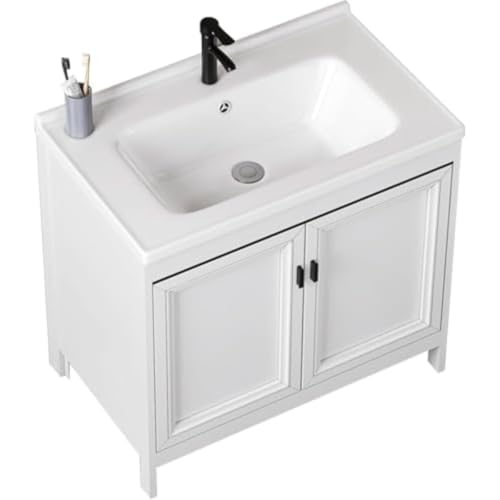 Conutoo洗面化粧台 洗面台 収納キャビネット 陶器製 洗面ボウル 自立型 開き戸 洗面シンク 手洗い器 おしゃれ アルミニウム シンク セット 温水・冷水栓付 排水金具 バルコニー、庭、洗面所、シンク (61x40x81cm)