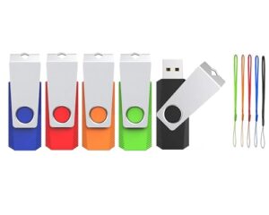 USBメモリ 2GB 5個セットWooolken USB2.0 360度回転式設計軽量フラッシュドライブストラップ付きデータ保存とバックアップ用のUSBスティック