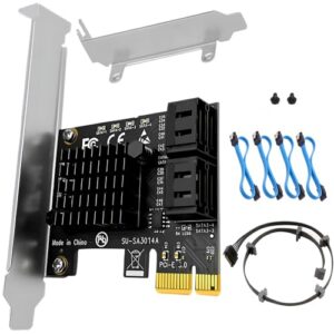 PCI-E X1 – SATA 3.0コントローラーカード、データと電源ケーブル付きの4ポートSATA III拡張カード、PCI-Express 1X 4X 8X 16Xスロットをサポート、Windows10/7/8/XP/Vista/Linux用