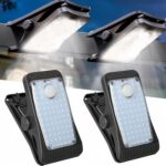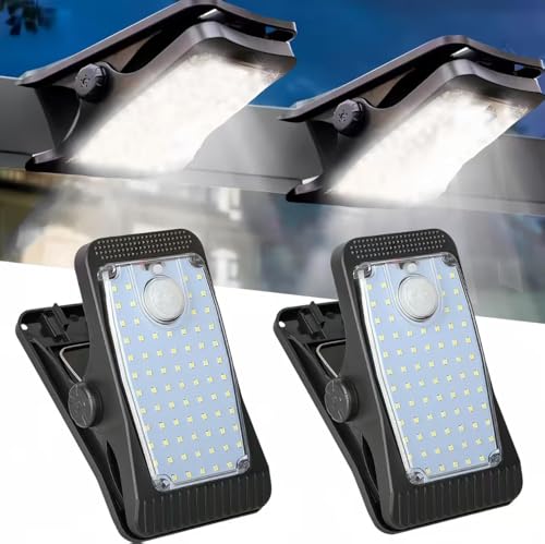YANHAOの屋外用クリップライトは、人感センサー付きで白色光を発し、73個のLEDを使用。2パック入りで、3モード切替可。防水性能抜群で、防災や防犯に最適な超高輝度ソーラーライト。