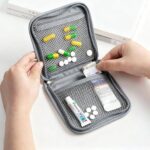 このミニポータブルジュエリーオーガナイザーバッグは、グレーのコンパクトなデザインで、薬、コイン、ケーブルなどを整理整頓できます。持ち運びに便利で、日常生活の必需品をすっきり収納できます。