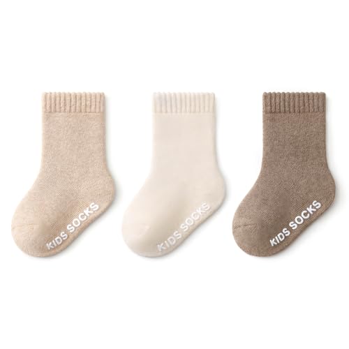 AOIREMONの可愛いベビー靴下は、厚手で保温防寒に優れた3足セットです。色違いで新生児から5歳まで対応。滑り止め付きで柔らかく、出産祝いにも最適です。