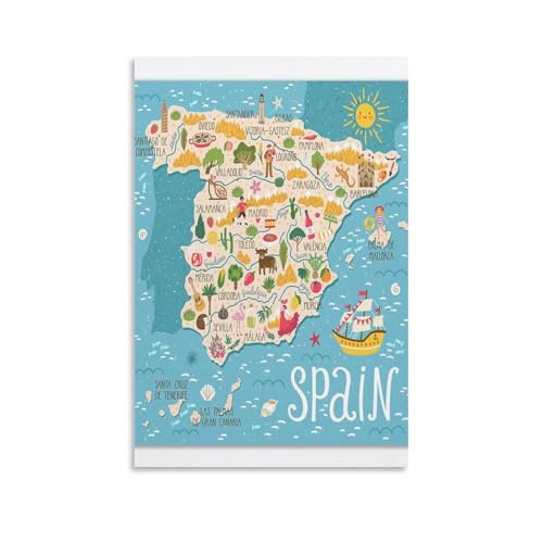 Everyday Designsのスペイン観光地図は、アトラクションやウォールアートを取り入れた美しい12×18インチのイラストポスターです。リビングや寝室、ダイニングルームやバスルームに最適なホーム装飾としてお使いいただけます。