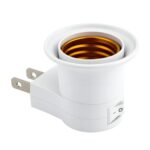 電球変換アダプターはスイッチ付きでE26口金に対応。簡単に取り付け可能なソケット付きコンセントプラグ。家庭、オフィス、植物育成灯に最適なホワイトデザイン。