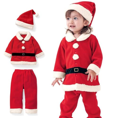 Matreeglamのサンタクロース衣装は、80-110サイズのベビー・子供用クリスマスコスプレ3点セット。ふわふわ柔らかいズボン、サンタ帽子付きでかわいらしいコスチュームです。