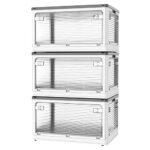 楽活の収納ボックスは、55.6L・3セットで透明・蓋付き。全方向から取り出せ、組み立て簡単。省スペースで折りたたみ可能。キャスター付きで、衣装や小物の収納に最適。防塵・防カビ・防湿機能あり。サイズは幅51.5×奥行36×高さ30cm。