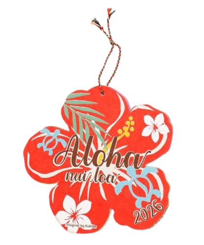 2026年版のダイカットハワイアンカレンダー。壁掛け用で、おしゃれなハイビスカスデザインが特徴。インテリアにも最適なポスター型雑貨。ハワイの雰囲気を楽しめます。