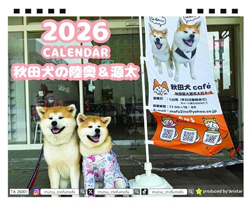 秋田犬の陸奥と源太の2026年卓上カレンダーです。愛らしい姿を月ごとに楽しめ、癒しのアイテムとしておすすめ。サイズやデザインも魅力的で、犬好きにはたまらない商品です。