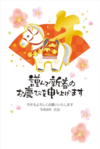 【10枚入り】令和8年(2026年)用の午年パック年賀状です。豪華な箔押しデザインで、お祝いの気持ちを華やかに演出。コンパクトなサイズで送付にも便利。