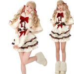 2025年クリスマス&新年限定のサンタワンピース。可愛い雪だまるデザインで、大きいサイズもあり。ロリータスタイルのコスプレ衣装で、文化祭やイベントにも最適。カラーはホワイト、サイズはM。