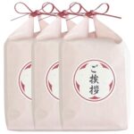 令和7年産の山形県産はえぬき450gの精米が3合入りの紙袋が3個セットです。ピンクの紙袋で、引っ越しや転勤、工事・リフォームなどのご挨拶に最適です。