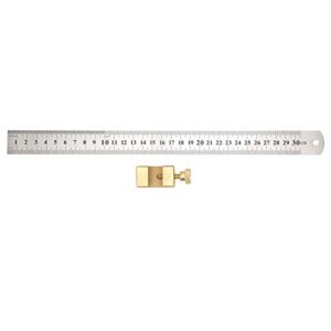 スチール定規付き真鍮木工ラインスクライバー、大工仕事用位置決めブロック測定ツール、精密マーキング用定規溝付き調節可能なスクライビングロケーター