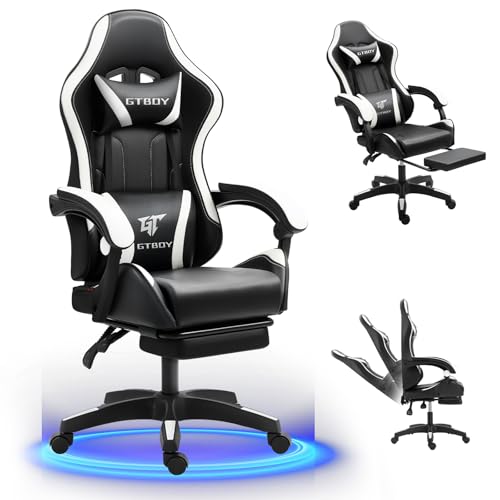 GTBoyゲーミングチェアはオットマン付きで、最高の座り心地を提供。人間工学設計により、リクライニング機能や高さ調整機能を搭載。テレワークやゲームに最適なデスクチェア(黒×白)。
