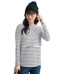 [ニッセン] マタニティTシャツ・カットソー レディース 【産前・産後 授乳服】 授乳しやすい ボートネック長袖ボーダーTシャツ オフ×ブラック マタニティM