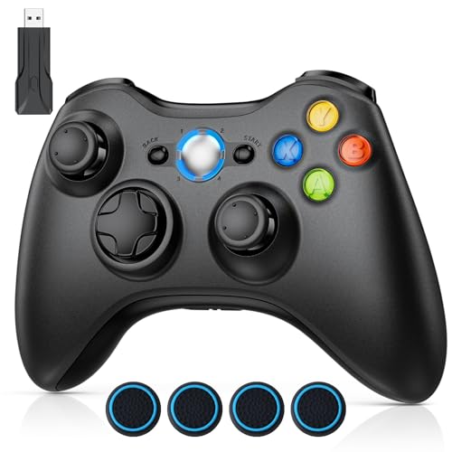 Xbox 360コントローラーはPC対応で、無線接続・遅延なし。二重振動、人体工学設計で高耐久性。アシストキャップ4枚付き。