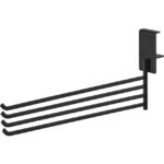 山崎実業の360度回転できる室内物干しタオルハンガーは、折り畳み式でドア枠や鴨居に取り付け可能。サイズはW4×D33.1×H14cm、シックなブラックカラーで使いやすさとデザイン性を兼ね備えています。